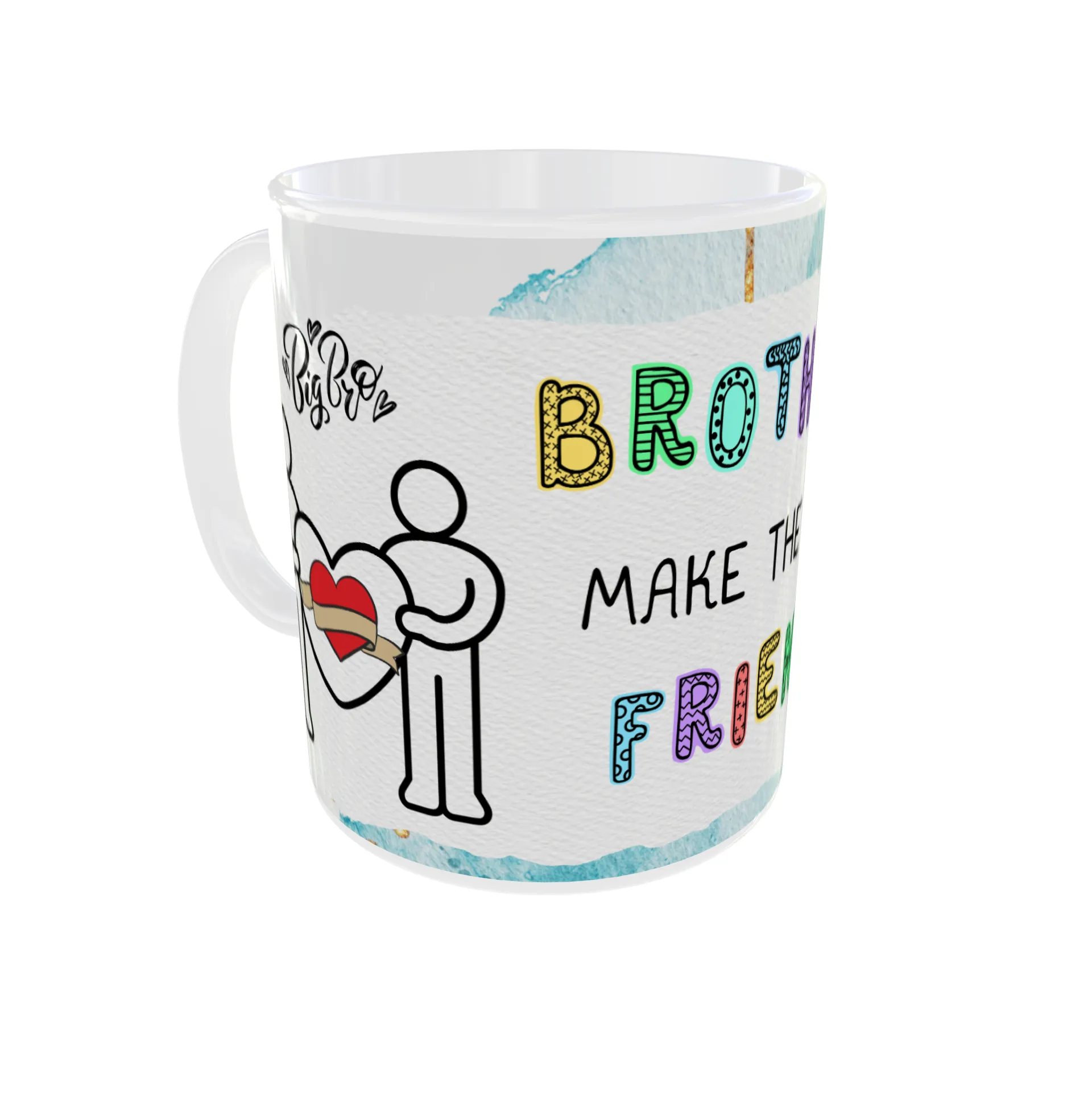 This mug is more than just a vessel for your favorite beverage; it’s a tribute to the unbreakable connection shared between brothers. Featuring a vibrant and playful design, the mug showcases the sentiment: “Brothers Make The Best Friends.” Two figures are depicted holding a heart with a banner, symbolizing love and friendship. Perfect for gifting or personal use, this mug serves as a daily reminder of the precious bond with your brother. Enjoy your coffee, tea, or hot cocoa while celebrating the brotherhood!